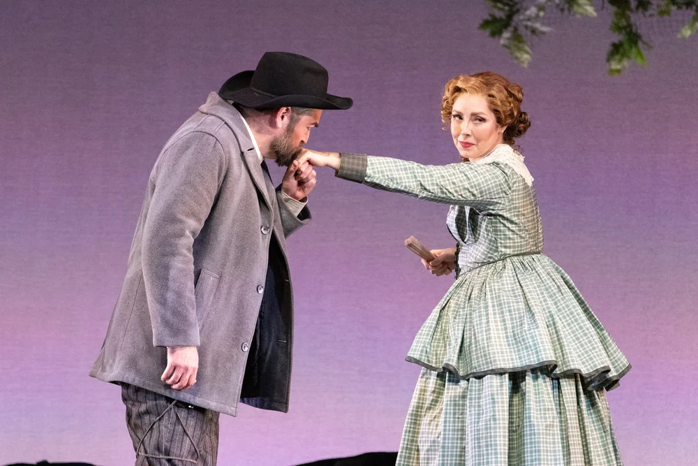 Accomplice Home Guard Travis (Craig Irvin) meets Callie (Maureen McKay), Elizabeth’s sister-in-law. Picture by Dave Pearson Pictures; courtesy of Virginia Opera.